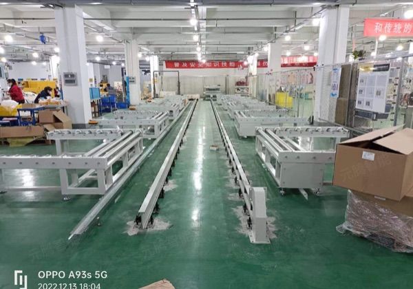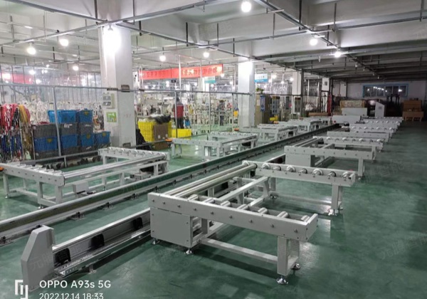 Ø 标准流水线总装工位—调试工位采用滚筒式流水线,不设分支结构;各工位间设定有机械限位;