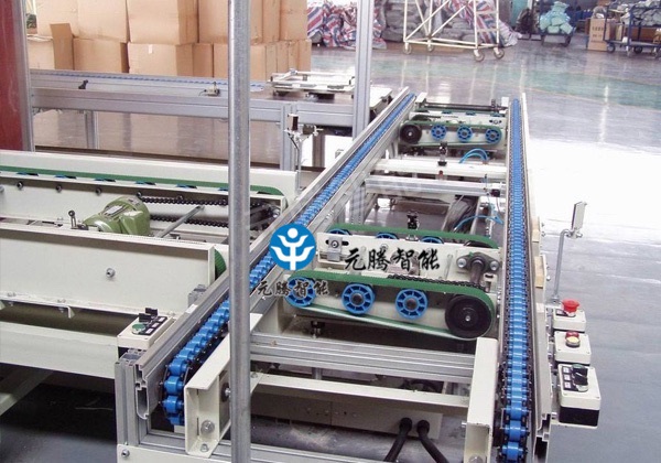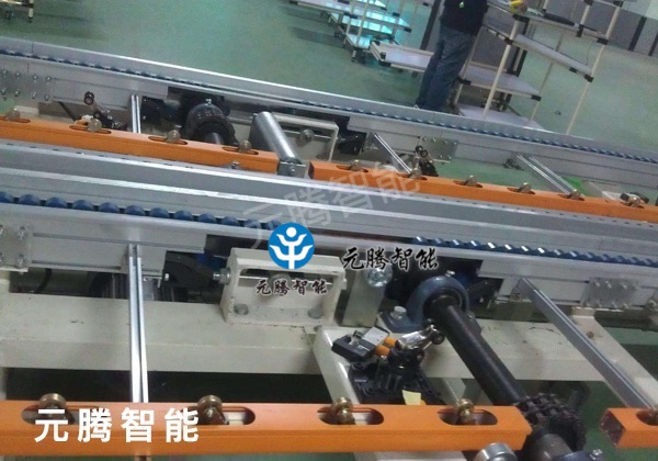 倍速链流水线组成的生产线通常称为:自流式输送系统倍速链输送机,主要用于装配及加工生产线中的物料输送,其输送原理是运用倍速链条的增速功能,使其上承托货物的工装板快速运行,通过阻挡器停止于相应的操作位置;或通过相应指令来完成积放动作及移行、转位、专线等功能。